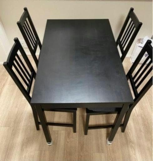 - ダイニングチェアとセットにして購入しましたが、組立は簡単です。脚の取り付け方法が三角の原理を応用してあり大変しっかりした脚の取り付けになっています。傷色むらもなくきれいなテーブルです。