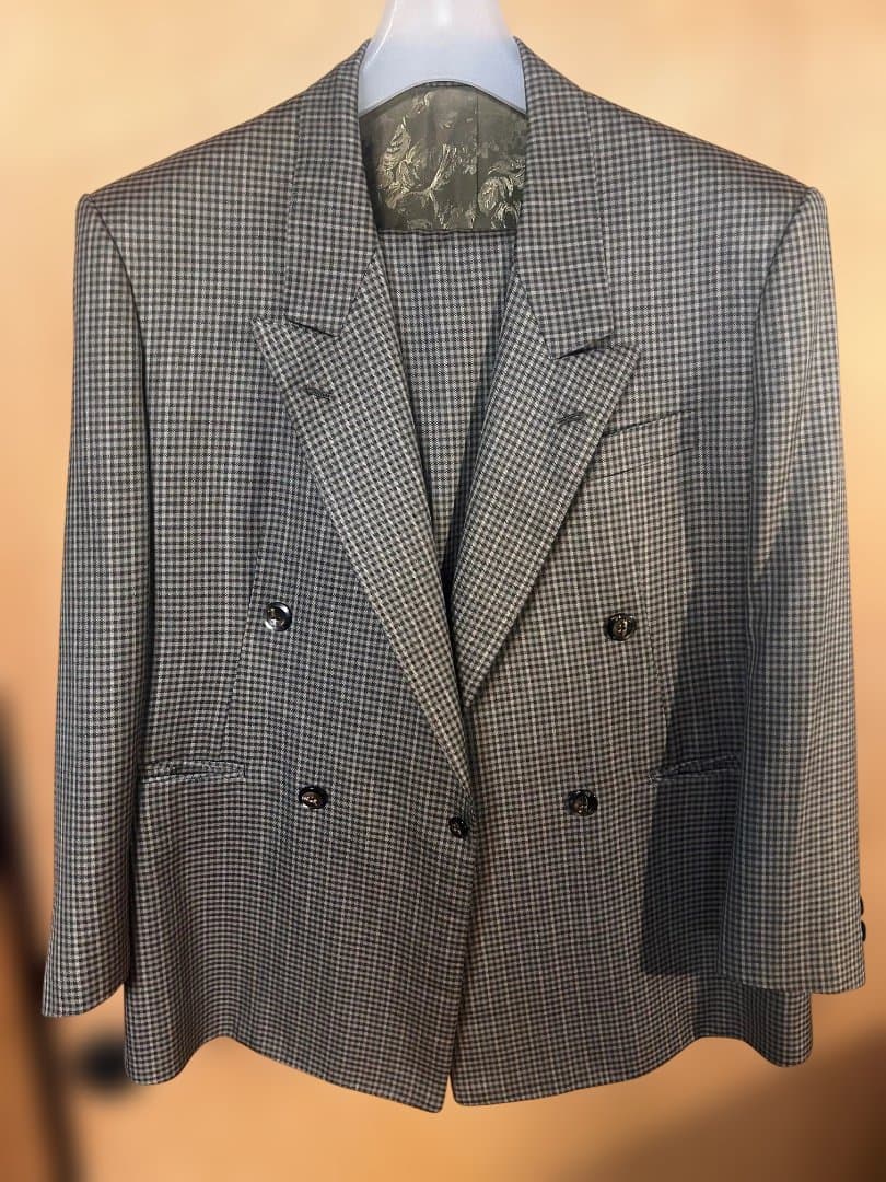 【ブランド】\rLARDINI ラルディーニ\r\r【商品説明】\rラルディーニのエレガントなスリーピースです。\rフォーマルに特化されたデザインなので結婚式参列、主役、前撮り用の衣装としても活躍いただけます。ベストだけのスタイルも様になります◎\r状態もかなり綺麗ですので長くお使いいただけます。当方170cm 体重50kg 痩せ型蝶ネクタイ、シャツ、チーフ、サスペンダーも必要でしたら+2000円でお付けします。\r\r【サイズ】\rジャケット\rSIZE:42(XSサイズ相当)\r着丈:70cm(後ろ襟下~後ろ裾下)\r身幅:48cm(脇下~脇下)\r肩幅:41cm(肩の縫い目~肩の縫い目)\r袖丈:63cm(肩の縫い目~袖先)\rベスト\r着丈:cm(後ろ襟下~後ろ裾下)\r身幅:cm(脇下~脇下)\rボトムス\rSIZE:44(Sサイズ相当)\rウエスト:78cm(平置き計測×2) :縫い代 4.5cm\rレングス:71cm(股下~裾先) :縫い代 8.5cm\r股上:(前)24cm(ベルト幅含む)\r渡幅:25.5cm(股下の縫い目から水平ラインの幅)\r裾幅:19cm(裾に沿って) \r\r※素人採寸のため多少の誤差はご了承下さい。 \r※平置きで測定しております。\r※ビンテージ,古着のため状態の判断は個々で異なることをご了承の上ご購入宜しくお願いします。\r※写真には写っていない箇所にも汚れ,傷等ある可能性がありますので、ご了承の上ご購入下さい。\r※写真撮影のため小道具は付属致しません。\r(シャツ,ネクタイ.ネクタイピン等)\r\r【etc】\rセットアップ スーツ シングル メンズ \rスリーピース 1B 1ボタン 1釦 タキシード\rノータック 本切羽 総裏 春夏 秋冬\r最高級 上品 大人 紳士 \rグレー ブラック ブラウン 灰色 黒 茶 茶色\r冠婚葬祭 結婚式 二次会 パーティー 成人式 \r卒業式 社会人 就活 面接 リモート キレイめ \rシンプル テレワーク ビジネス フォーマル\r通勤 商談 高級イタリア製生地使用\r\rボタン色…黒\r\r【購入元】\r大手ブランド品取扱い店