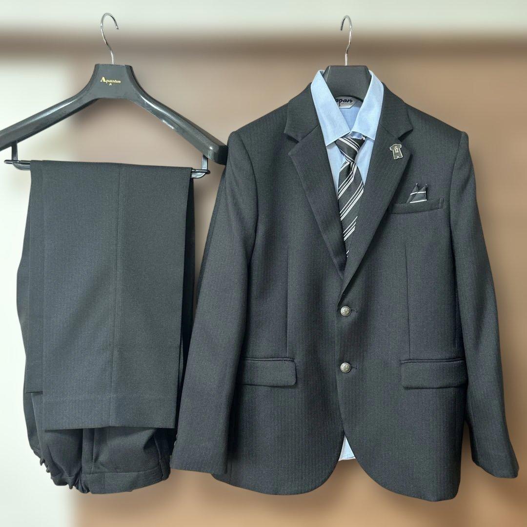 卒業式 フォーマルスーツ 男子BEAMS DESIGNの3つボタンブラックスーツ、ネクタイとポケットチーフ付きでフォーマルな場面に最適!- 色: ネイビー- スタイル: フォーマルスーツ- サイズ: 160◎アイテム内容■ネイビーのスーツ上下■水色のストライプシャツ■ロゴ柄のネクタイの、4点セットです⭐️息子の卒業式に使用しました。一度きりでしたが、スーツ姿がとてもかっこよく写真に映えました。感動の式となり、大満足でした♪◎サイズ詳細ジャケット 肩幅40 袖丈56ウエスト62〜70調整可能 股下67 自宅保管、中古品などご理解いただける方のご購入をお願いいたします。