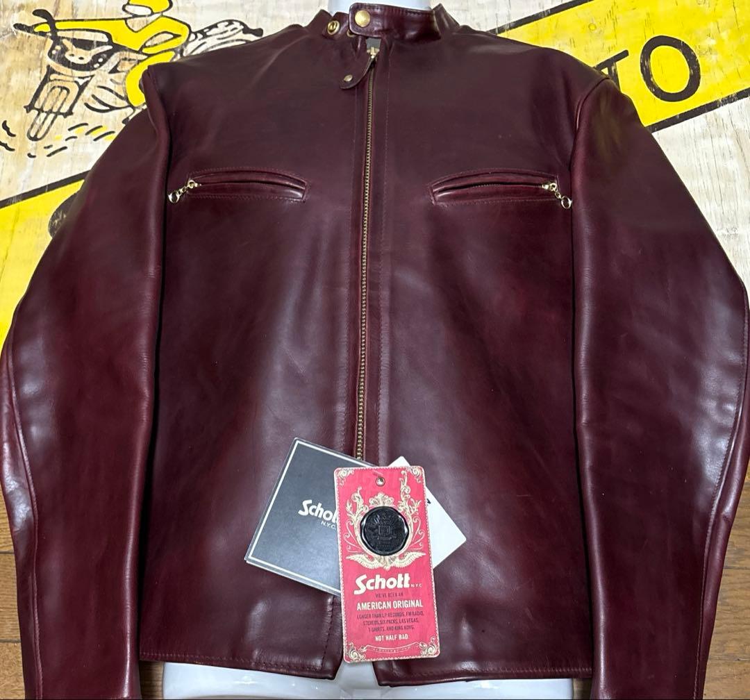 希少✨schott 襟付ライダースジャケット 652H ホースハイド 38 馬革 馬革 schott 襟付ライダースジャケット 652H ホースハイド 38 ダーク