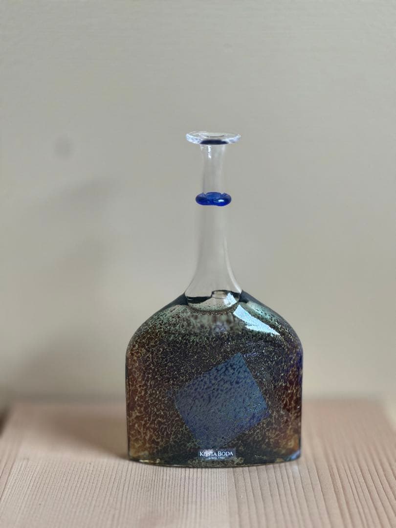 フィンランドのデザイナー Tapio Wirkkala が1966年にデザインをし、イタリアのベニーニ工房で製作したBolle シリーズのガラスベースのひとつ。インカルモ という高度な技法で2つの部分を接続しています。底部にサインが入ってます。目立つ傷もなく美しい状態です。現在でも新品で入手可能です。価格は1690euro。