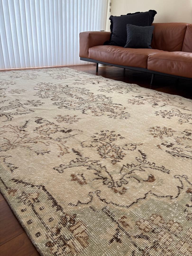 購入金額209,000 円 (税込)完全禁煙、ペット無し環境にて2ヶ月使用後、清潔環境で保管しています。フランス語で\"大地・地球\"を意味する名のアクセントラグ「テール」。自然の色をモチーフにした、コーディネートに取り入れやすいニュートラルカラーと上品なくすみカラー展開の日本製ラグです。やや長めの光沢感の強い糸を高密度で打ち込んでいるので、踏むたびに生まれるベルベットのような濃淡が美しく、その豊かな風合いはインテリアの質を高めてリュクスな空間を演出します。一般的に高密度と言われるラグと比較して1.5倍以上の高密度なパイルの打ち込みで贅沢な質感ながらも、硬さを感じないソフトな感触を追求しました。底つき感のないやわらかな踏み心地と、シルクのように滑らかな肌触りは極上の心地よさです。材質:ナイロン100%裏面仕様:綿布(折返し仕様)機能:防炎 床暖房・ホットカーペットカバー対応 防ダニ加工 遊び毛が出にくい製造国:日本