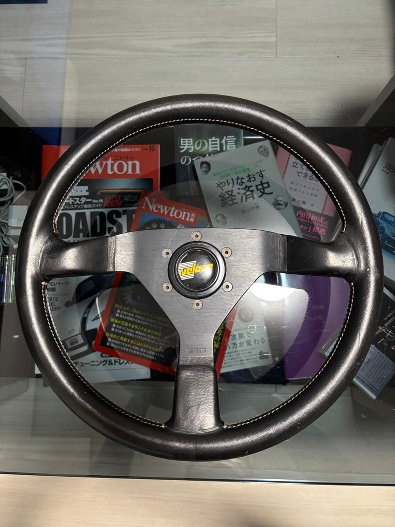 イタルボランテ イモラのステアリングです。(外径は約345Φ)\rR32GT-Rにて2年ほど使用していましたがそれ以降は\r室内にて保管していました。\r箱に入れていなかったため、若干の傷などはあります。\r状態は写真にてご確認ください。\r中古品ですのでご理解いただきご検討ください。