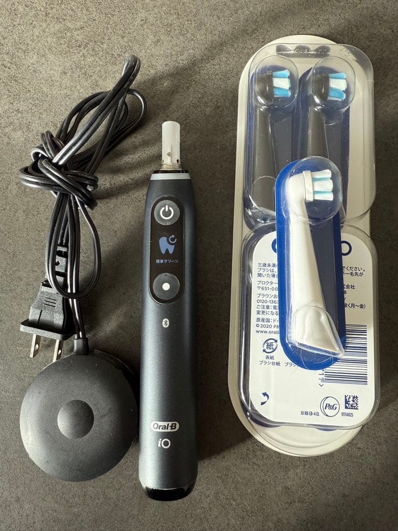 ブラウン Oral-B iO Series4\r充電器、トラベルケース、ブラシヘッド のセット商品になります。\r\r入替用にビックカメラで2025年7月26日に購入しました。家族も購入してしまっていたため、1台は予備で保管していましたが、Oral-Bの公式サイトで、充電池の寿命が3~5年と公開されていた事、リチウムイオン電池は使用しなくても自然劣化する事から、新しいうちに出品することにしました。\r\r新品・未使用・未開封になります。\r領収書(購入証明)も同封いたします。\r\rOral-B iOシリーズの製品の箱には、なぜか製造年月日が印字されています。ビックカメラで購入したこの商品は昨年度製造になります。\r\r型番iOG41A61KWT\r内容・電動歯ブラシ本体\r・ブラシヘッド 1本\r・充電器\r・トラベルケース\r区分電動歯ブラシ 本体、ブラシヘッド、付属品\r原産国ドイツ\r\r#ブラウンOral_B本体\r#BRAUN
