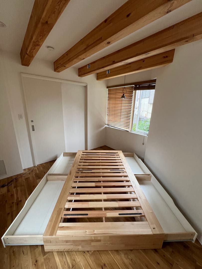 - 思った以上にしっかり作られていてビックリ!2台購入してセミダブルマットを使用し、2台並べて家族4人で使用しています。